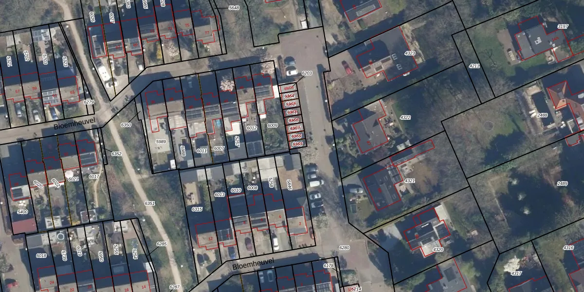 Bloemheuvel 48-01 is gelegen op kadastraal perceel SOE00E6363. Deze kadastrale aanduiding is uniek en wordt gebruikt door het Kadaster om eigendomsrechten en andere zakelijke rechten vast te leggen. Het perceel maakt onderdeel uit van de kadastrale gemeente Soest.