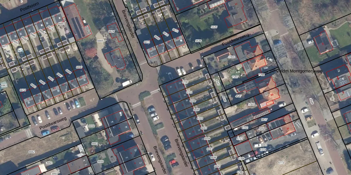 Brievengaarder 1 is gelegen op kadastraal perceel SOE00E6700. Deze kadastrale aanduiding is uniek en wordt gebruikt door het Kadaster om eigendomsrechten en andere zakelijke rechten vast te leggen. Het perceel maakt onderdeel uit van de kadastrale gemeente Soest.
