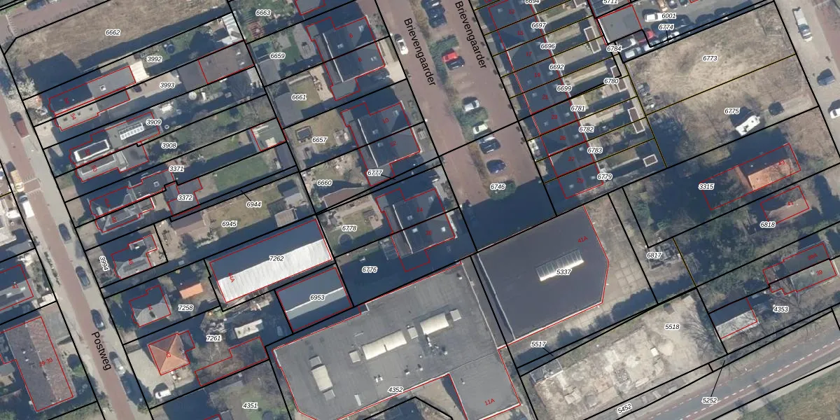 Het perceel waarop Brievengaarder 14 staat heeft een oppervlakte van 355 m². Dit is een groot perceel. De perceeloppervlakte wordt geregistreerd door het Kadaster. Gedetailleerde informatie over de maten van dit perceel kunt u vinden in het rapport Kadastrale kaart met maatvoering van Brievengaarder 14.