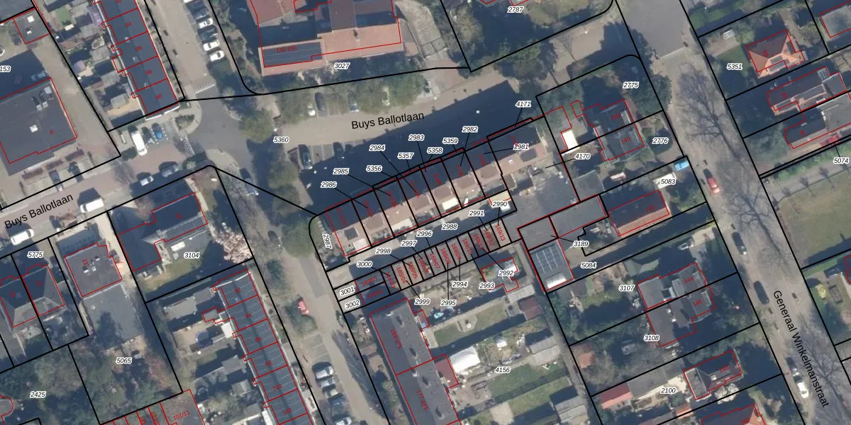 Het perceel waarop Buys Ballotlaan 11 staat heeft een oppervlakte van 70 m². Dit is een klein perceel. De perceeloppervlakte wordt geregistreerd door het Kadaster. Gedetailleerde informatie over de maten van dit perceel kunt u vinden in het rapport Kadastrale kaart met maatvoering van Buys Ballotlaan 11.