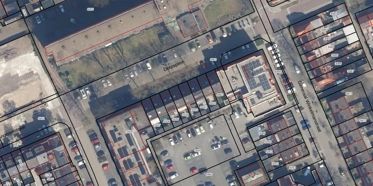 Gebruik de zoekbalk of klik op een perceel voor informatie over de adressen binnen dit perceel.