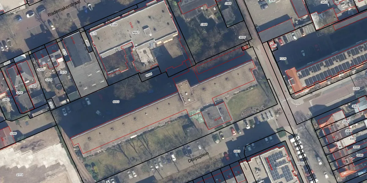 Het perceel waarop Dorpsplein 99 staat heeft een oppervlakte van 4741 m². Dit is een zeer groot perceel. De perceeloppervlakte wordt geregistreerd door het Kadaster. Gedetailleerde informatie over de maten van dit perceel kunt u vinden in het rapport Kadastrale kaart met maatvoering van Dorpsplein 99.