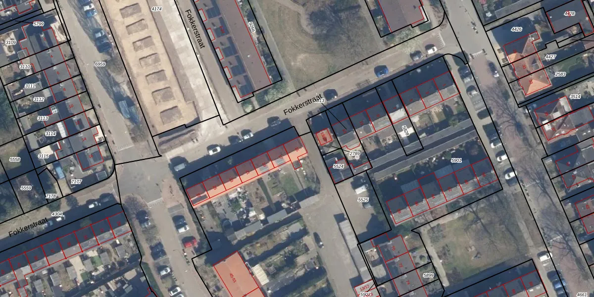 Het perceel waarop Fokkerstraat 15 staat heeft een oppervlakte van 8688 m². Dit is een zeer groot perceel. De perceeloppervlakte wordt geregistreerd door het Kadaster. Gedetailleerde informatie over de maten van dit perceel kunt u vinden in het rapport Kadastrale kaart met maatvoering van Fokkerstraat 15.