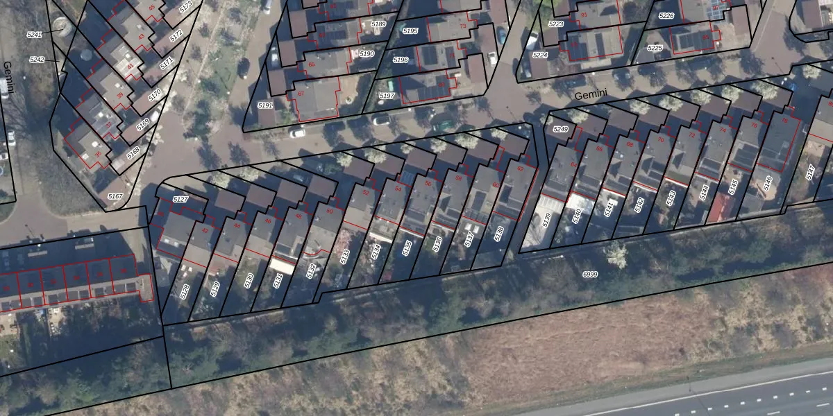 Het perceel waarop Gemini 56 staat heeft een oppervlakte van 250 m². Dit is een middelgroot perceel. De perceeloppervlakte wordt geregistreerd door het Kadaster. Gedetailleerde informatie over de maten van dit perceel kunt u vinden in het rapport Kadastrale kaart met maatvoering van Gemini 56.