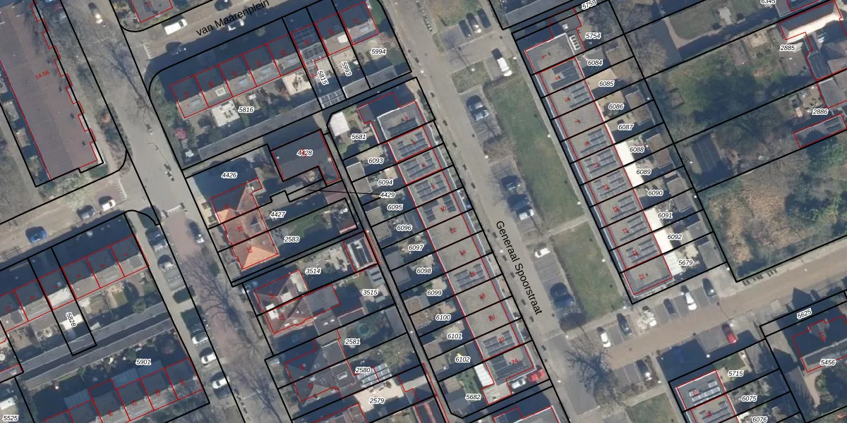 Generaal Spoorstraat 10 is gelegen op kadastraal perceel SOE00E6096. Deze kadastrale aanduiding is uniek en wordt gebruikt door het Kadaster om eigendomsrechten en andere zakelijke rechten vast te leggen. Het perceel maakt onderdeel uit van de kadastrale gemeente Soest.