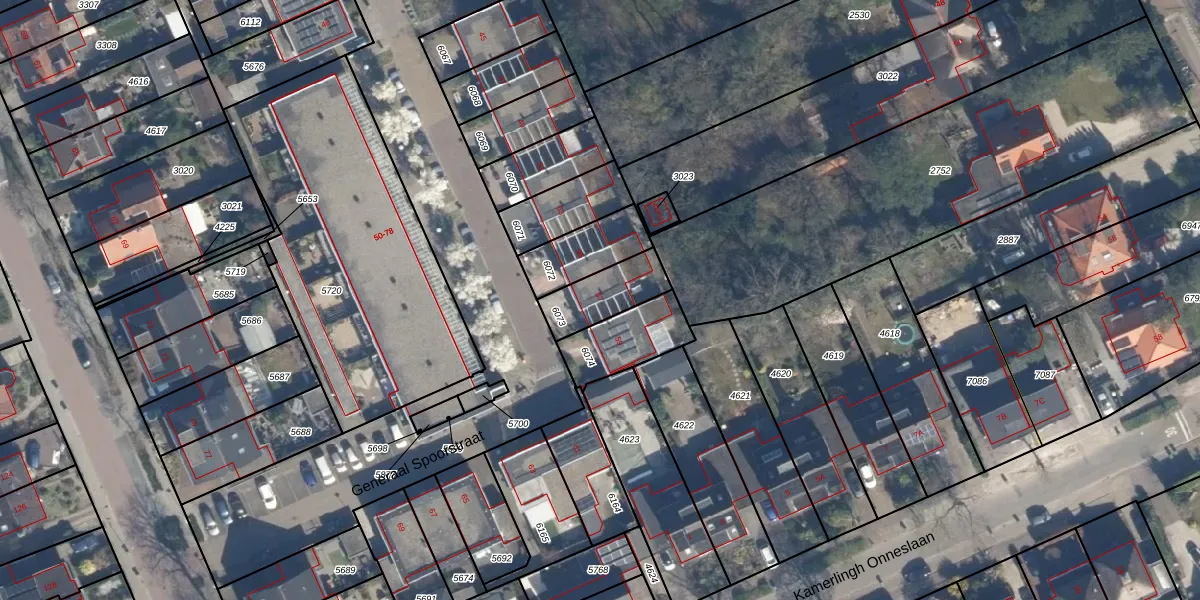 Generaal Spoorstraat 57 is gelegen op kadastraal perceel SOE00E6073. Deze kadastrale aanduiding is uniek en wordt gebruikt door het Kadaster om eigendomsrechten en andere zakelijke rechten vast te leggen. Het perceel maakt onderdeel uit van de kadastrale gemeente Soest.