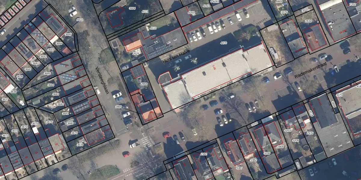 Het perceel waarop Huis ten Halve 19 staat heeft een oppervlakte van 2666 m². Dit is een zeer groot perceel. De perceeloppervlakte wordt geregistreerd door het Kadaster. Gedetailleerde informatie over de maten van dit perceel kunt u vinden in het rapport Kadastrale kaart met maatvoering van Huis ten Halve 19.