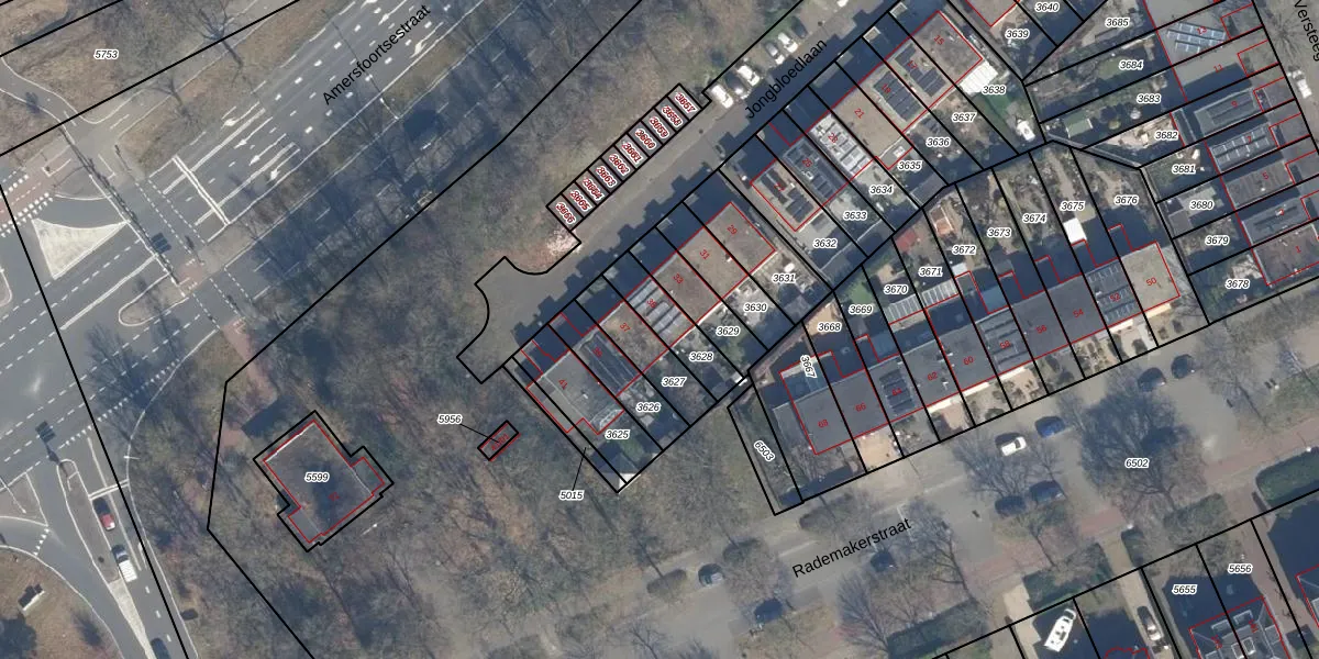 Jongbloedlaan 35 is gelegen op kadastraal perceel SOE00E3628. Deze kadastrale aanduiding is uniek en wordt gebruikt door het Kadaster om eigendomsrechten en andere zakelijke rechten vast te leggen. Het perceel maakt onderdeel uit van de kadastrale gemeente Soest.