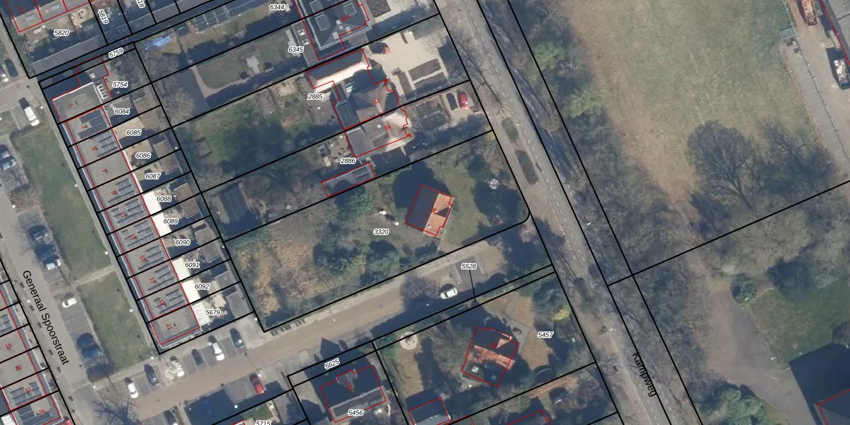 Kampweg 36 is gelegen op kadastraal perceel SOE00E3320. Deze kadastrale aanduiding is uniek en wordt gebruikt door het Kadaster om eigendomsrechten en andere zakelijke rechten vast te leggen. Het perceel maakt onderdeel uit van de kadastrale gemeente Soest.