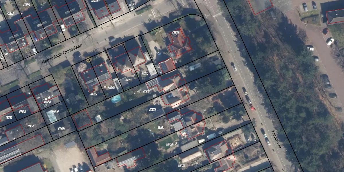 Kampweg 64 is gelegen op kadastraal perceel SOE00E2537. Deze kadastrale aanduiding is uniek en wordt gebruikt door het Kadaster om eigendomsrechten en andere zakelijke rechten vast te leggen. Het perceel maakt onderdeel uit van de kadastrale gemeente Soest.