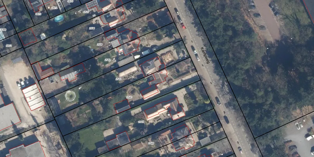 Kampweg 74 is gelegen op kadastraal perceel SOE00E2542. Deze kadastrale aanduiding is uniek en wordt gebruikt door het Kadaster om eigendomsrechten en andere zakelijke rechten vast te leggen. Het perceel maakt onderdeel uit van de kadastrale gemeente Soest.
