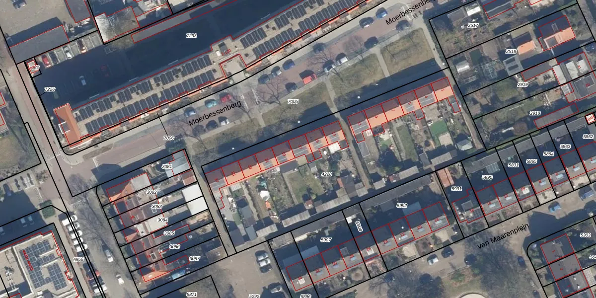 Het perceel waarop Moerbessenberg 17 staat heeft een oppervlakte van 2810 m². Dit is een zeer groot perceel. De perceeloppervlakte wordt geregistreerd door het Kadaster. Gedetailleerde informatie over de maten van dit perceel kunt u vinden in het rapport Kadastrale kaart met maatvoering van Moerbessenberg 17.