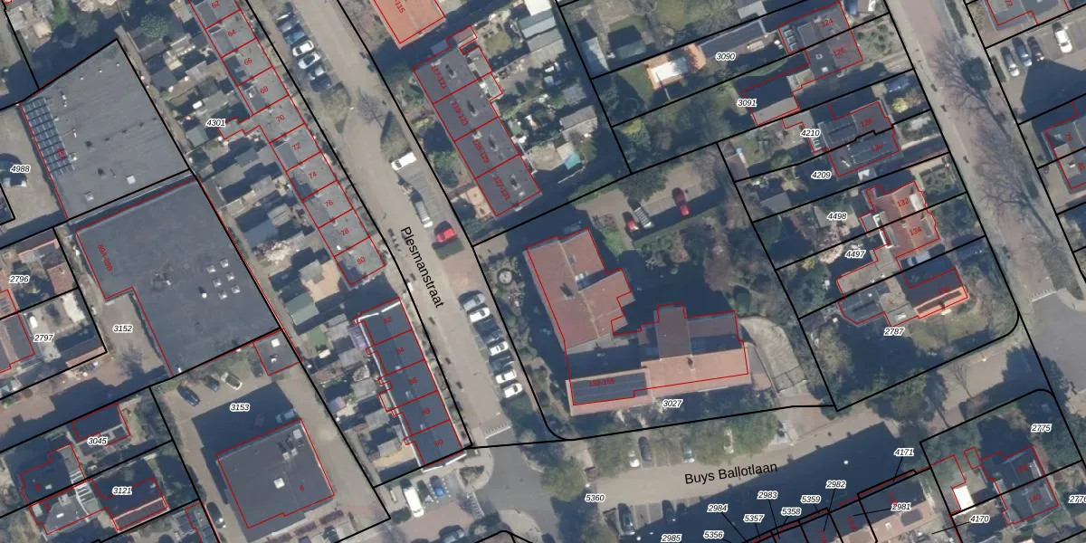 Het perceel waarop Plesmanstraat 141 staat heeft een oppervlakte van 2256 m². Dit is een zeer groot perceel. De perceeloppervlakte wordt geregistreerd door het Kadaster. Gedetailleerde informatie over de maten van dit perceel kunt u vinden in het rapport Kadastrale kaart met maatvoering van Plesmanstraat 141.