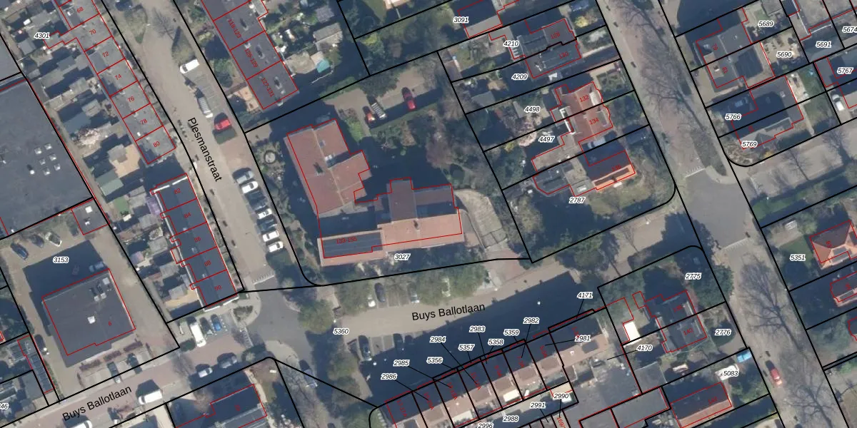 Het perceel waarop Plesmanstraat 151 staat heeft een oppervlakte van 2256 m². Dit is een zeer groot perceel. De perceeloppervlakte wordt geregistreerd door het Kadaster. Gedetailleerde informatie over de maten van dit perceel kunt u vinden in het rapport Kadastrale kaart met maatvoering van Plesmanstraat 151.