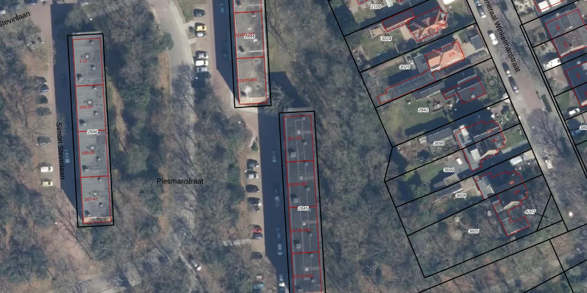 Plesmanstraat 263 is gelegen op kadastraal perceel SOE00E2845. Deze kadastrale aanduiding is uniek en wordt gebruikt door het Kadaster om eigendomsrechten en andere zakelijke rechten vast te leggen. Het perceel maakt onderdeel uit van de kadastrale gemeente Soest.