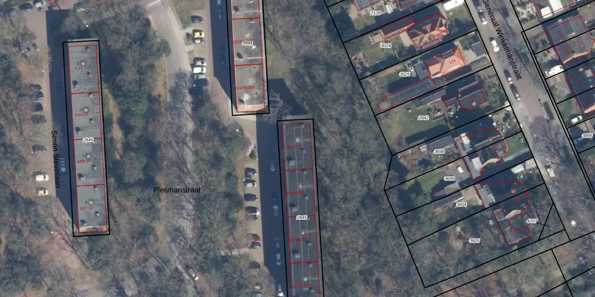Het perceel waarop Plesmanstraat 267 staat heeft een oppervlakte van 735 m². Dit is een groot perceel. De perceeloppervlakte wordt geregistreerd door het Kadaster. Gedetailleerde informatie over de maten van dit perceel kunt u vinden in het rapport Kadastrale kaart met maatvoering van Plesmanstraat 267.