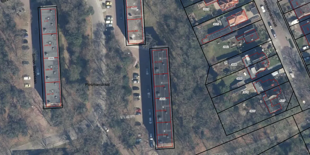 Plesmanstraat 273 is gelegen op kadastraal perceel SOE00E2845. Deze kadastrale aanduiding is uniek en wordt gebruikt door het Kadaster om eigendomsrechten en andere zakelijke rechten vast te leggen. Het perceel maakt onderdeel uit van de kadastrale gemeente Soest.