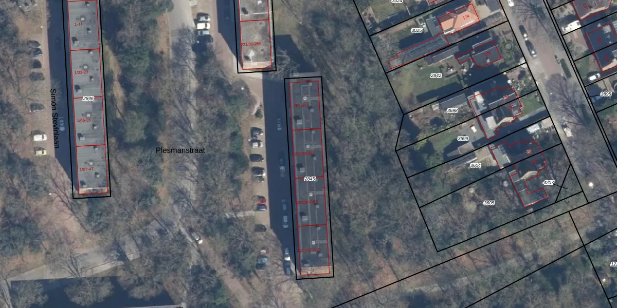 Plesmanstraat 283 is gelegen op kadastraal perceel SOE00E2845. Deze kadastrale aanduiding is uniek en wordt gebruikt door het Kadaster om eigendomsrechten en andere zakelijke rechten vast te leggen. Het perceel maakt onderdeel uit van de kadastrale gemeente Soest.