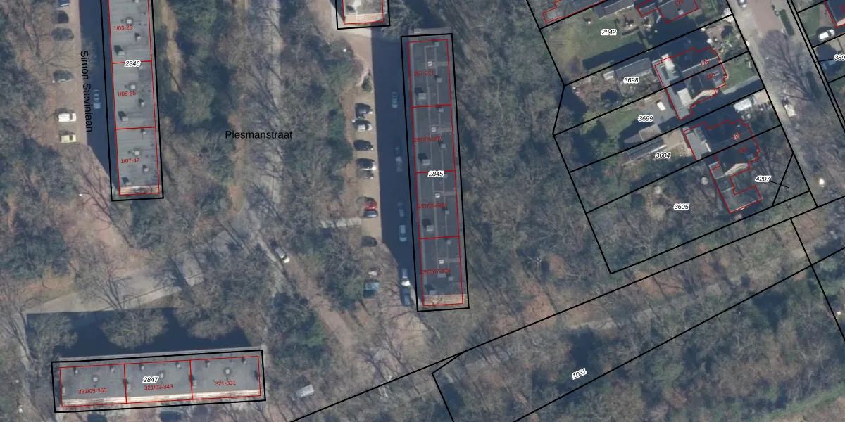 Plesmanstraat 291 is gelegen op kadastraal perceel SOE00E2845. Deze kadastrale aanduiding is uniek en wordt gebruikt door het Kadaster om eigendomsrechten en andere zakelijke rechten vast te leggen. Het perceel maakt onderdeel uit van de kadastrale gemeente Soest.