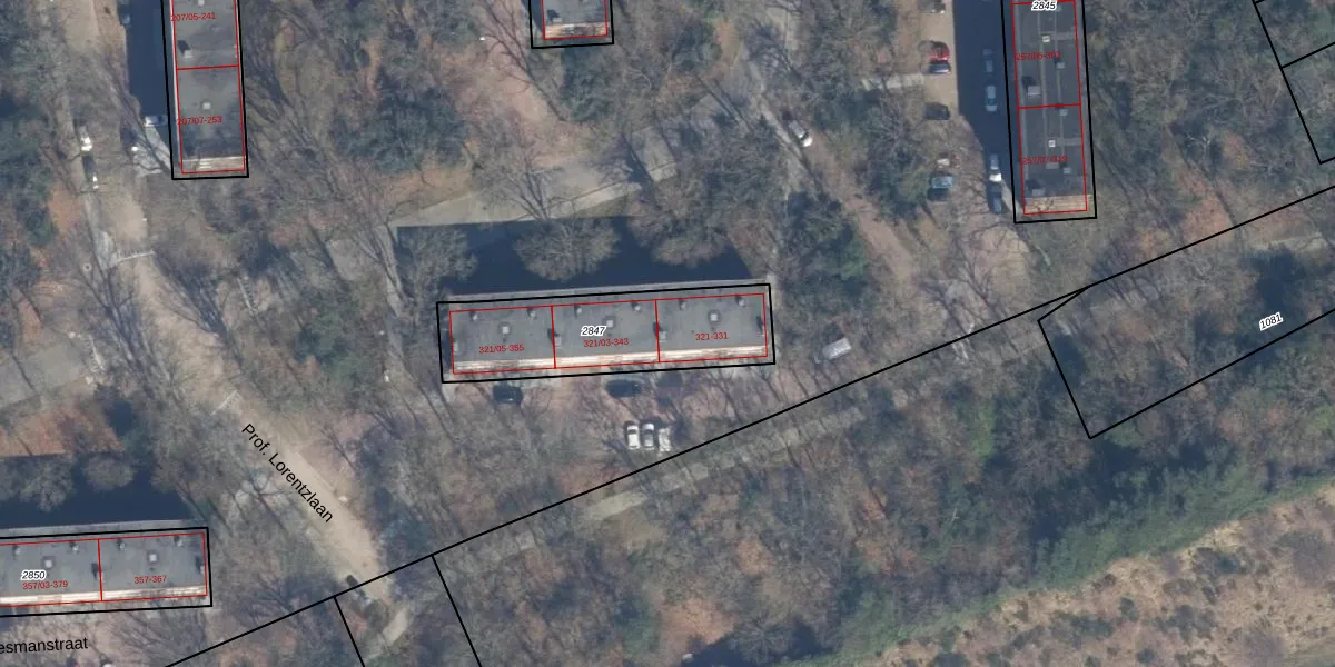 Plesmanstraat 321-01 is gelegen op kadastraal perceel SOE00E2847. Deze kadastrale aanduiding is uniek en wordt gebruikt door het Kadaster om eigendomsrechten en andere zakelijke rechten vast te leggen. Het perceel maakt onderdeel uit van de kadastrale gemeente Soest.