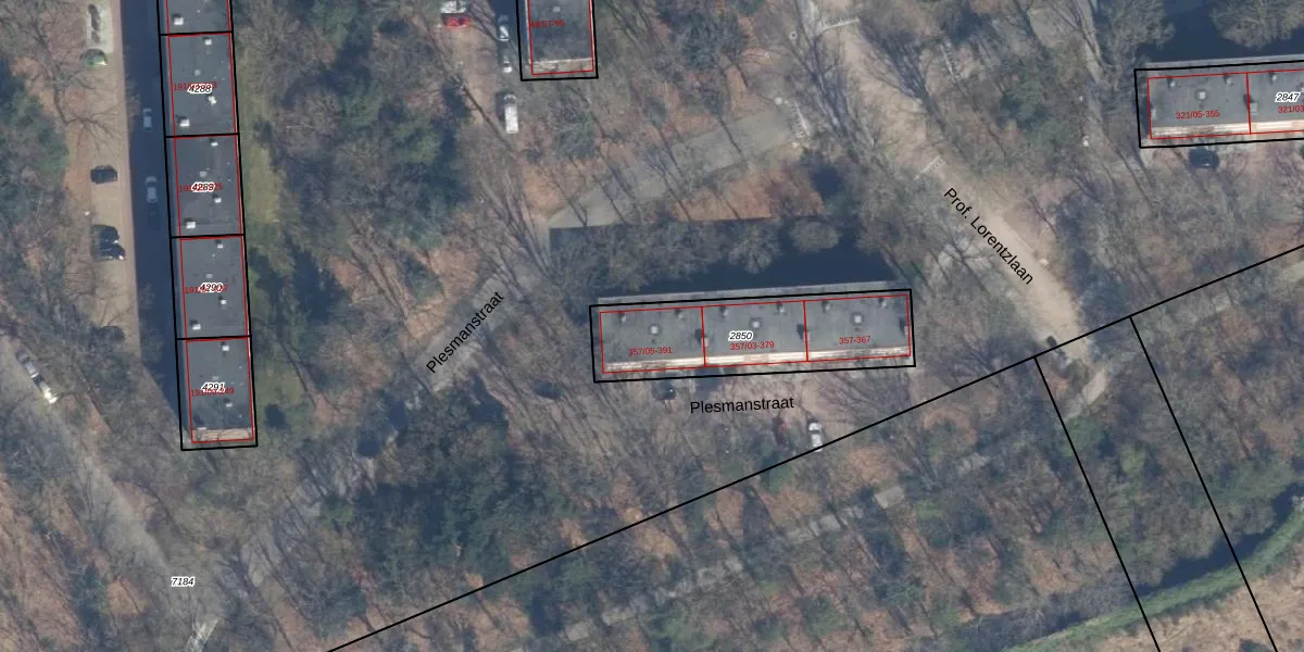 Het perceel waarop Plesmanstraat 389 staat heeft een oppervlakte van 558 m². Dit is een groot perceel. De perceeloppervlakte wordt geregistreerd door het Kadaster. Gedetailleerde informatie over de maten van dit perceel kunt u vinden in het rapport Kadastrale kaart met maatvoering van Plesmanstraat 389.