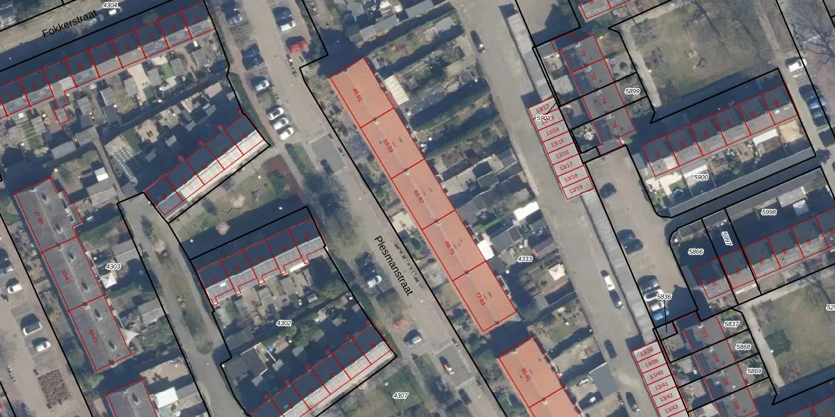 Plesmanstraat 63 is gelegen op kadastraal perceel SOE00E4333. Deze kadastrale aanduiding is uniek en wordt gebruikt door het Kadaster om eigendomsrechten en andere zakelijke rechten vast te leggen. Het perceel maakt onderdeel uit van de kadastrale gemeente Soest.