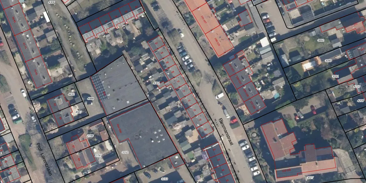 Het perceel waarop Plesmanstraat 72 staat heeft een oppervlakte van 3260 m². Dit is een zeer groot perceel. De perceeloppervlakte wordt geregistreerd door het Kadaster. Gedetailleerde informatie over de maten van dit perceel kunt u vinden in het rapport Kadastrale kaart met maatvoering van Plesmanstraat 72.