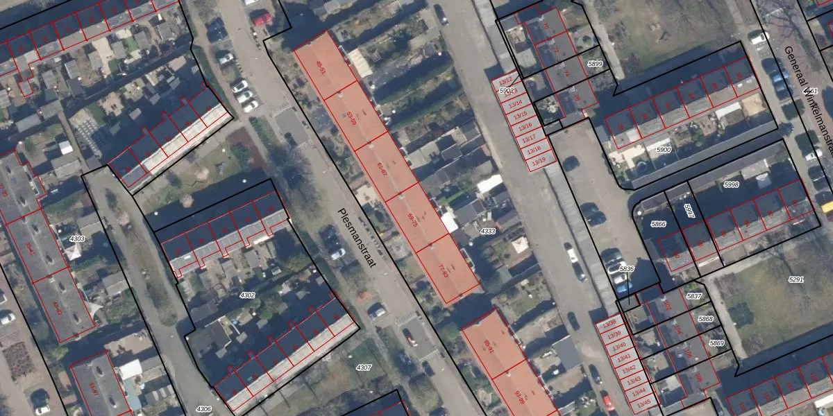 Het perceel waarop Plesmanstraat 73 staat heeft een oppervlakte van 8688 m². Dit is een zeer groot perceel. De perceeloppervlakte wordt geregistreerd door het Kadaster. Gedetailleerde informatie over de maten van dit perceel kunt u vinden in het rapport Kadastrale kaart met maatvoering van Plesmanstraat 73.