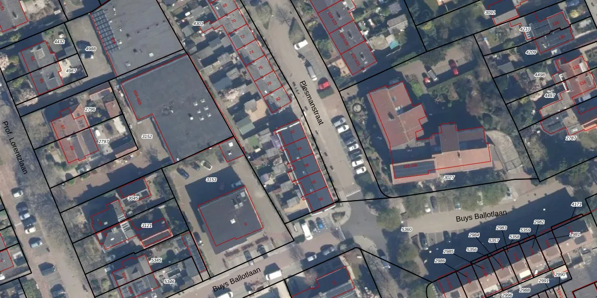 Het perceel waarop Plesmanstraat 84 staat heeft een oppervlakte van 3260 m². Dit is een zeer groot perceel. De perceeloppervlakte wordt geregistreerd door het Kadaster. Gedetailleerde informatie over de maten van dit perceel kunt u vinden in het rapport Kadastrale kaart met maatvoering van Plesmanstraat 84.