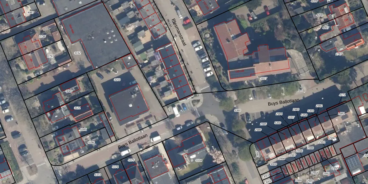 Het perceel waarop Plesmanstraat 90 staat heeft een oppervlakte van 3260 m². Dit is een zeer groot perceel. De perceeloppervlakte wordt geregistreerd door het Kadaster. Gedetailleerde informatie over de maten van dit perceel kunt u vinden in het rapport Kadastrale kaart met maatvoering van Plesmanstraat 90.
