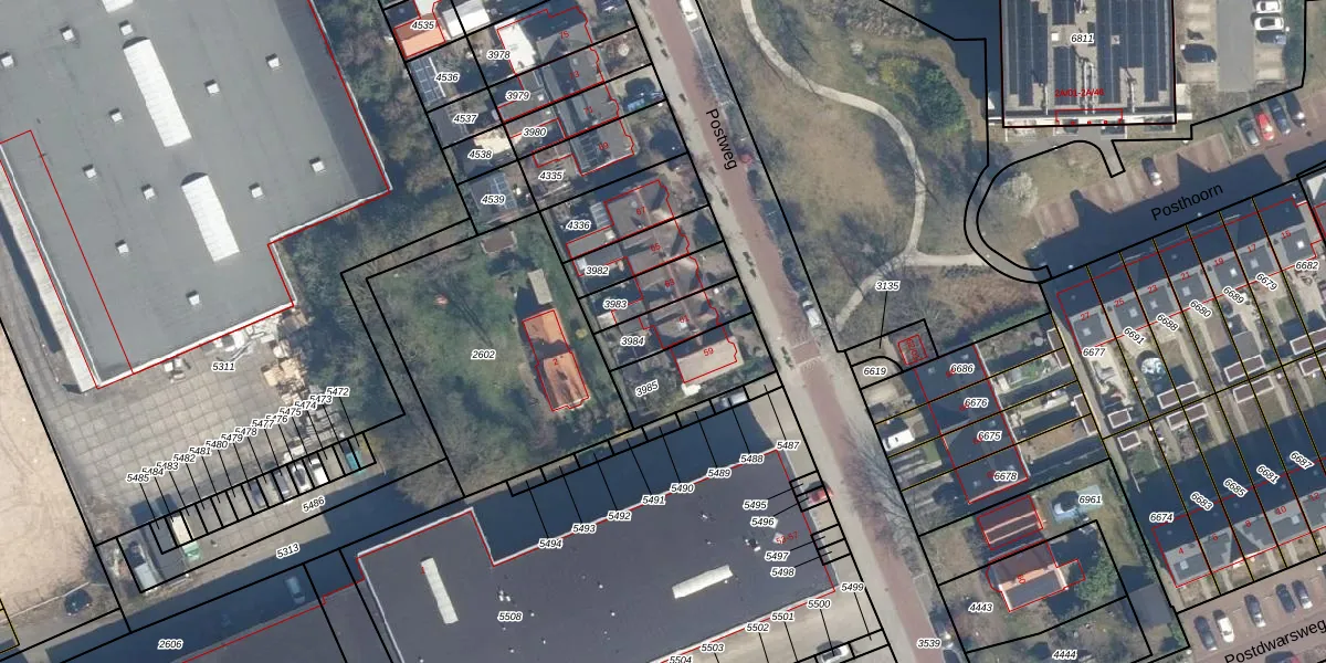 Postweg 61 is gelegen op kadastraal perceel SOE00E3984. Deze kadastrale aanduiding is uniek en wordt gebruikt door het Kadaster om eigendomsrechten en andere zakelijke rechten vast te leggen. Het perceel maakt onderdeel uit van de kadastrale gemeente Soest.