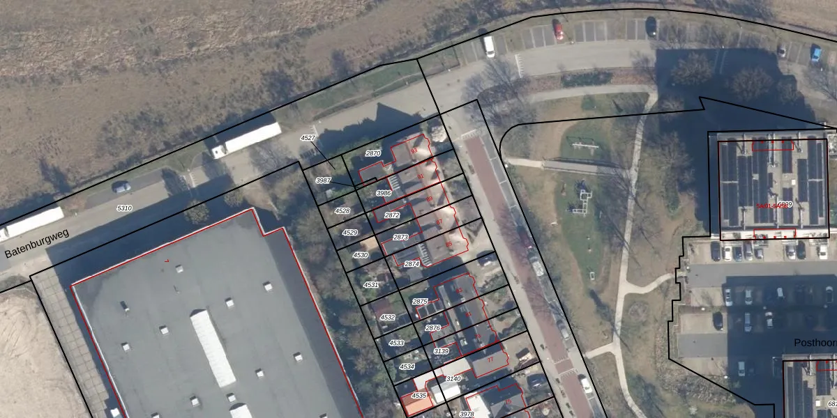 Postweg 89 is gelegen op kadastraal perceel SOE00E2872. Deze kadastrale aanduiding is uniek en wordt gebruikt door het Kadaster om eigendomsrechten en andere zakelijke rechten vast te leggen. Het perceel maakt onderdeel uit van de kadastrale gemeente Soest.