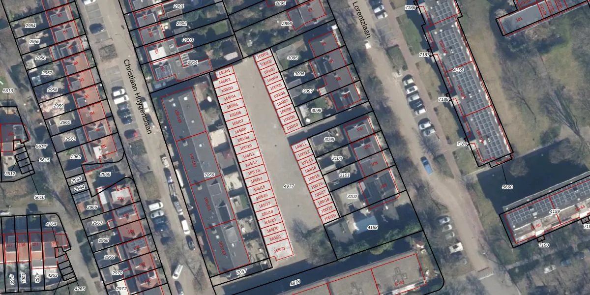 Prof. Lorentzlaan 100-11 is gelegen op kadastraal perceel SOE00E4977. Deze kadastrale aanduiding is uniek en wordt gebruikt door het Kadaster om eigendomsrechten en andere zakelijke rechten vast te leggen. Het perceel maakt onderdeel uit van de kadastrale gemeente Soest.