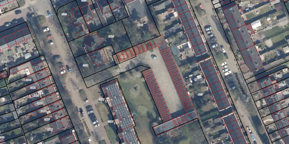 Prof. Lorentzlaan 101-43 is gelegen op kadastraal perceel SOE00E4157. Deze kadastrale aanduiding is uniek en wordt gebruikt door het Kadaster om eigendomsrechten en andere zakelijke rechten vast te leggen. Het perceel maakt onderdeel uit van de kadastrale gemeente Soest.