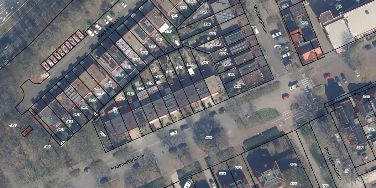 Rademakerstraat 54 is gelegen op kadastraal perceel SOE00E3674. Deze kadastrale aanduiding is uniek en wordt gebruikt door het Kadaster om eigendomsrechten en andere zakelijke rechten vast te leggen. Het perceel maakt onderdeel uit van de kadastrale gemeente Soest.