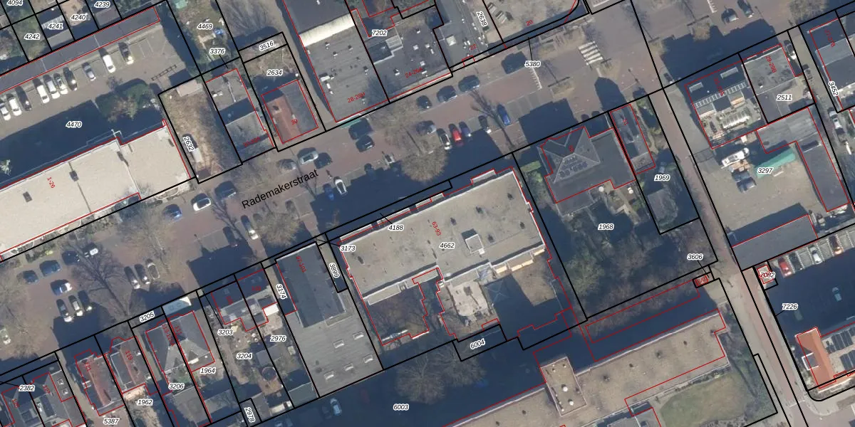 Het perceel waarop Rademakerstraat 63-102 staat heeft een oppervlakte van 1760 m². Dit is een zeer groot perceel. De perceeloppervlakte wordt geregistreerd door het Kadaster. Gedetailleerde informatie over de maten van dit perceel kunt u vinden in het rapport Kadastrale kaart met maatvoering van Rademakerstraat 63-102.