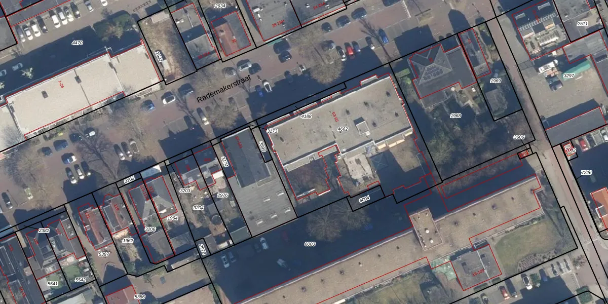 Het perceel waarop Rademakerstraat 63-107 staat heeft een oppervlakte van 1760 m². Dit is een zeer groot perceel. De perceeloppervlakte wordt geregistreerd door het Kadaster. Gedetailleerde informatie over de maten van dit perceel kunt u vinden in het rapport Kadastrale kaart met maatvoering van Rademakerstraat 63-107.
