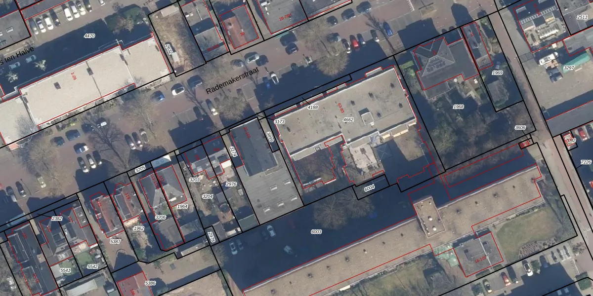 Rademakerstraat 63-109 is gelegen op kadastraal perceel SOE00E4662. Deze kadastrale aanduiding is uniek en wordt gebruikt door het Kadaster om eigendomsrechten en andere zakelijke rechten vast te leggen. Het perceel maakt onderdeel uit van de kadastrale gemeente Soest.