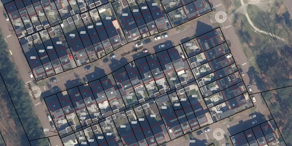 Schukkinglaan 7 is gelegen op kadastraal perceel SOE00E6530. Deze kadastrale aanduiding is uniek en wordt gebruikt door het Kadaster om eigendomsrechten en andere zakelijke rechten vast te leggen. Het perceel maakt onderdeel uit van de kadastrale gemeente Soest.