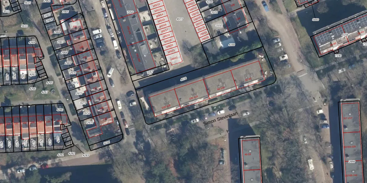 Simon Stevinlaan 116 is gelegen op kadastraal perceel SOE00E4978. Deze kadastrale aanduiding is uniek en wordt gebruikt door het Kadaster om eigendomsrechten en andere zakelijke rechten vast te leggen. Het perceel maakt onderdeel uit van de kadastrale gemeente Soest.