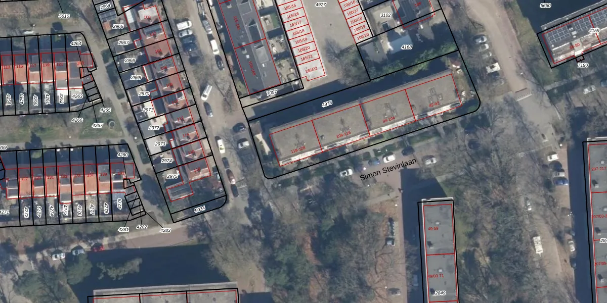 Simon Stevinlaan 118 is gelegen op kadastraal perceel SOE00E4978. Deze kadastrale aanduiding is uniek en wordt gebruikt door het Kadaster om eigendomsrechten en andere zakelijke rechten vast te leggen. Het perceel maakt onderdeel uit van de kadastrale gemeente Soest.