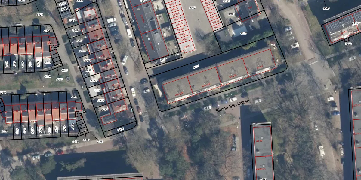 Simon Stevinlaan 122 is gelegen op kadastraal perceel SOE00E4978. Deze kadastrale aanduiding is uniek en wordt gebruikt door het Kadaster om eigendomsrechten en andere zakelijke rechten vast te leggen. Het perceel maakt onderdeel uit van de kadastrale gemeente Soest.