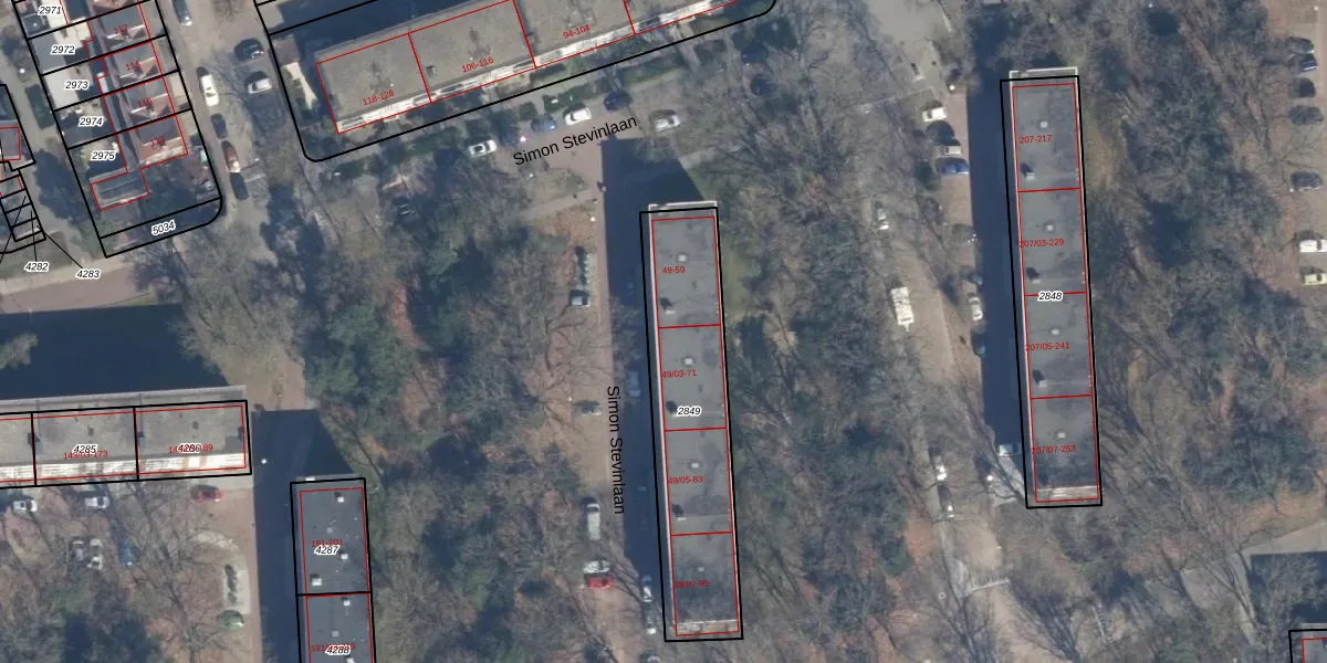 Simon Stevinlaan 49-03 is gelegen op kadastraal perceel SOE00E2849. Deze kadastrale aanduiding is uniek en wordt gebruikt door het Kadaster om eigendomsrechten en andere zakelijke rechten vast te leggen. Het perceel maakt onderdeel uit van de kadastrale gemeente Soest.