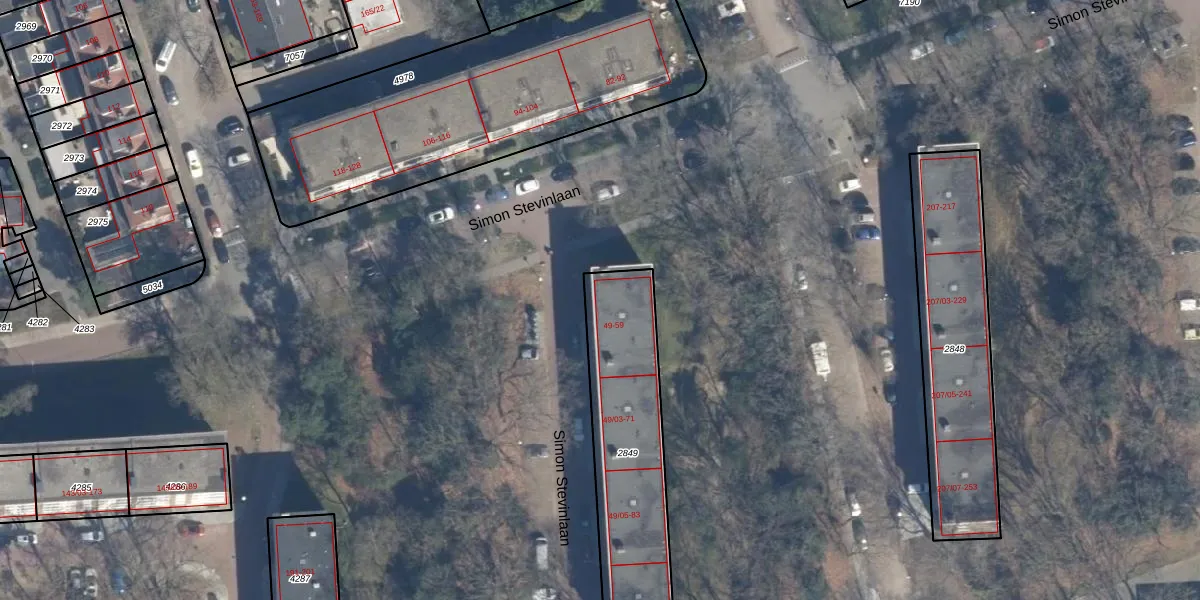 Simon Stevinlaan 49 is gelegen op kadastraal perceel SOE00E2849. Deze kadastrale aanduiding is uniek en wordt gebruikt door het Kadaster om eigendomsrechten en andere zakelijke rechten vast te leggen. Het perceel maakt onderdeel uit van de kadastrale gemeente Soest.