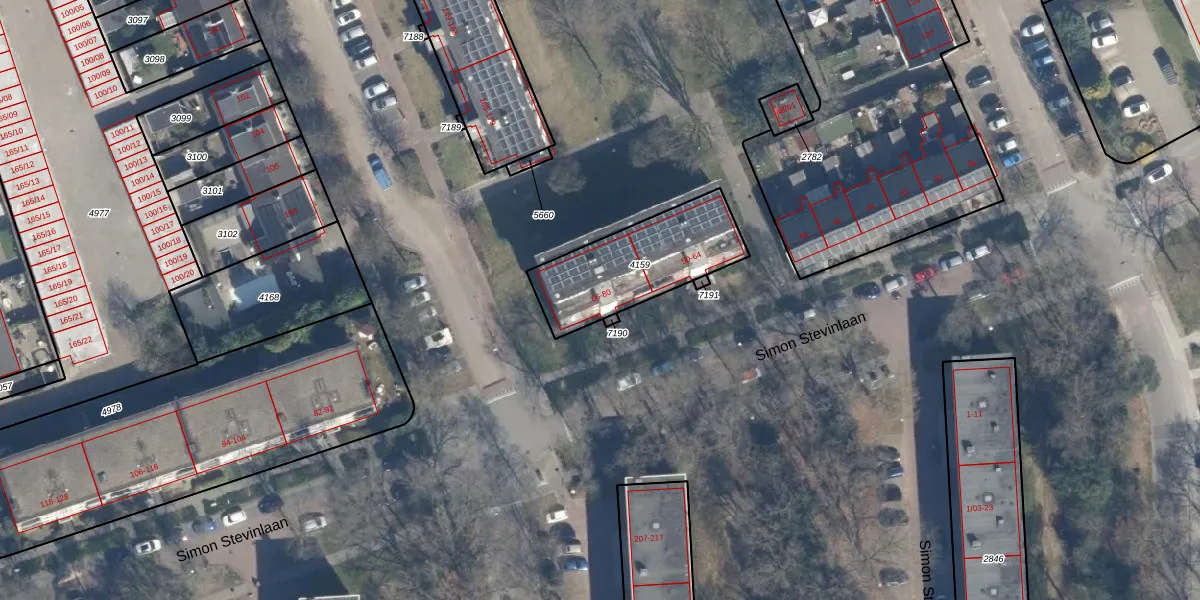 Simon Stevinlaan 66 is gelegen op kadastraal perceel SOE00E4159. Deze kadastrale aanduiding is uniek en wordt gebruikt door het Kadaster om eigendomsrechten en andere zakelijke rechten vast te leggen. Het perceel maakt onderdeel uit van de kadastrale gemeente Soest.