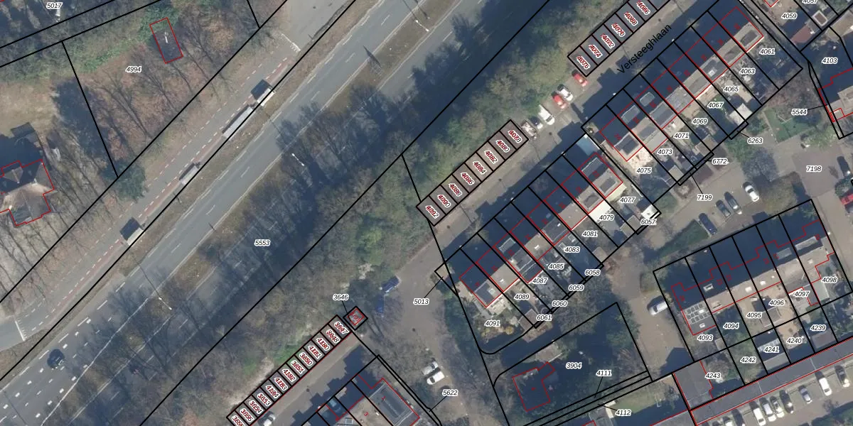 Versteeghlaan 8-01 is gelegen op kadastraal perceel SOE00E4092. Deze kadastrale aanduiding is uniek en wordt gebruikt door het Kadaster om eigendomsrechten en andere zakelijke rechten vast te leggen. Het perceel maakt onderdeel uit van de kadastrale gemeente Soest.