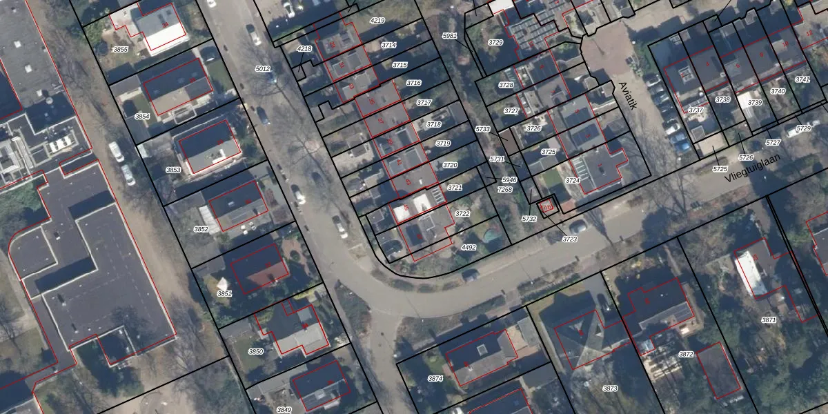 Vliegtuiglaan 45 is gelegen op kadastraal perceel SOE00E3721. Deze kadastrale aanduiding is uniek en wordt gebruikt door het Kadaster om eigendomsrechten en andere zakelijke rechten vast te leggen. Het perceel maakt onderdeel uit van de kadastrale gemeente Soest.
