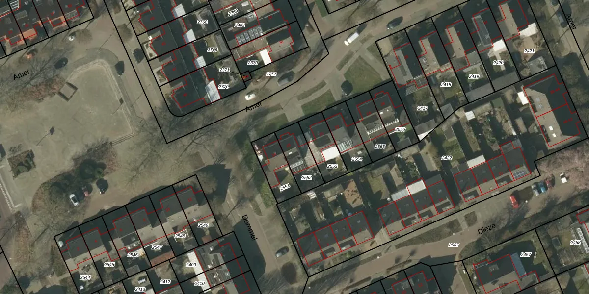 Het perceel waarop Amer 18 staat heeft een oppervlakte van 199 m². Dit is een middelgroot perceel. De perceeloppervlakte wordt geregistreerd door het Kadaster. Gedetailleerde informatie over de maten van dit perceel kunt u vinden in het rapport Kadastrale kaart met maatvoering van Amer 18.