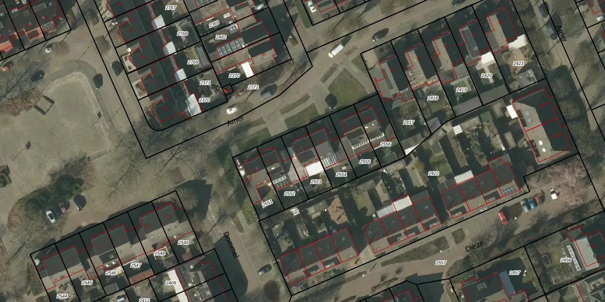 Het perceel waarop Amer 20 staat heeft een oppervlakte van 200 m². Dit is een middelgroot perceel. De perceeloppervlakte wordt geregistreerd door het Kadaster. Gedetailleerde informatie over de maten van dit perceel kunt u vinden in het rapport Kadastrale kaart met maatvoering van Amer 20.