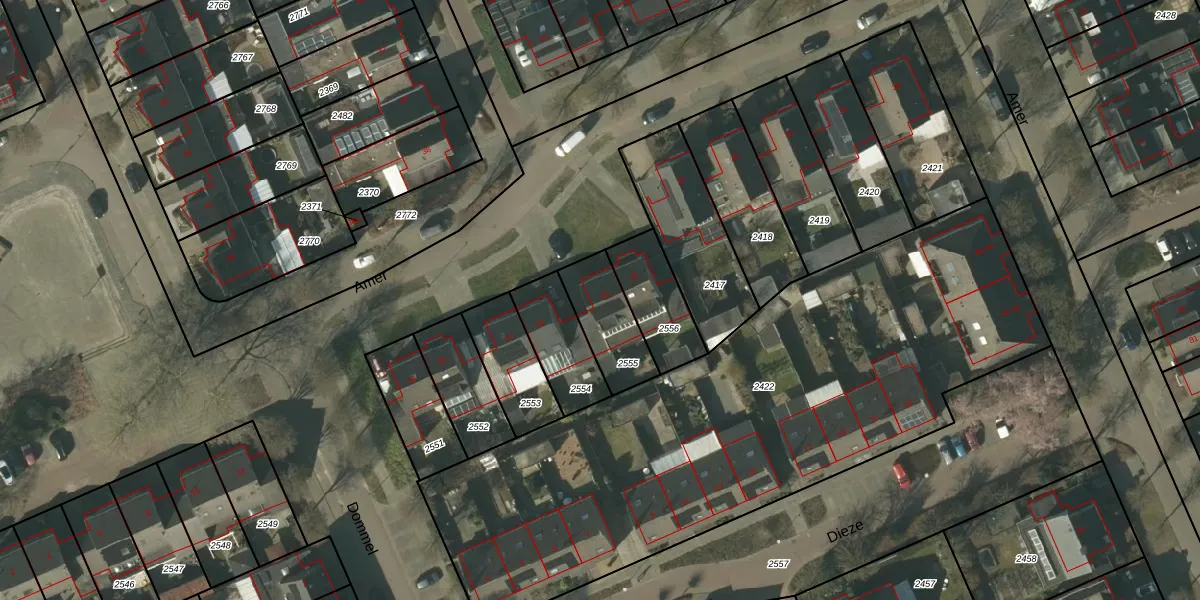 Het perceel waarop Amer 24 staat heeft een oppervlakte van 200 m². Dit is een middelgroot perceel. De perceeloppervlakte wordt geregistreerd door het Kadaster. Gedetailleerde informatie over de maten van dit perceel kunt u vinden in het rapport Kadastrale kaart met maatvoering van Amer 24.